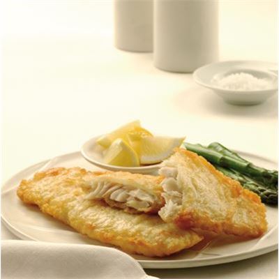Frozen, raw, skinless and deboned natural wild caught barramundi fish fillet, coated in light crispy batter. Product is par fry.